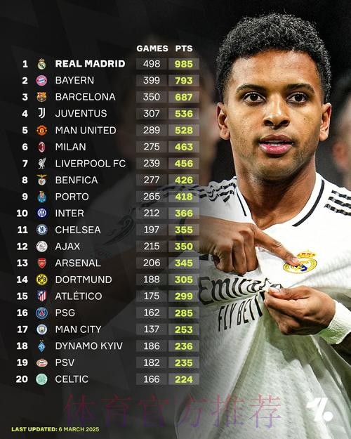 当一张“欧冠积分榜:皇马985分断档领先 拜仁第2巴萨第3”的对比图出现在球迷视野中时 很多人第一反应并不是具体的分值到底怎么算 而是直观感受到一种“时代跨度”的压迫感 这份榜单像一面镜子 折